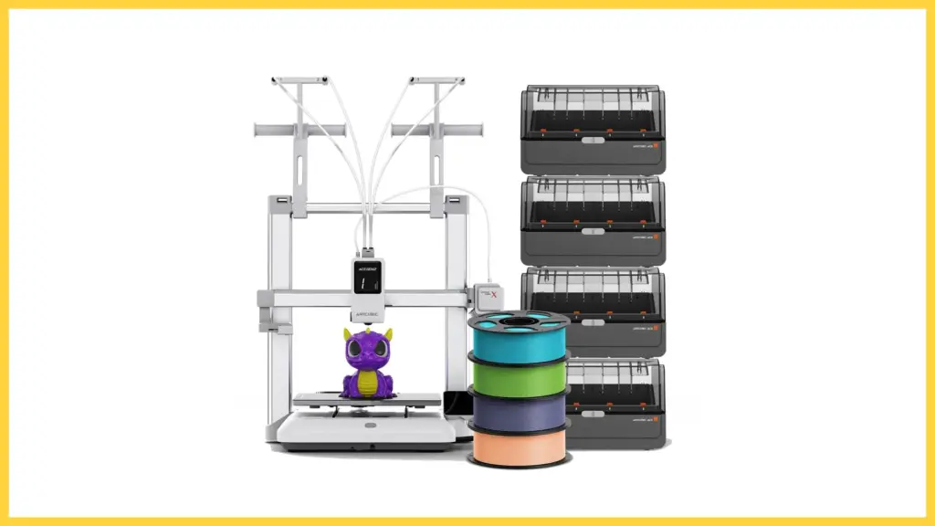 Interessant ist der Kobra X nicht nur wegen der Farben, sondern auch wegen der Materialkombinationen. Anycubic spricht von Mischdruck aus weichen und harten Materialien. Beispielsweise sollen Kombinationen aus PLA + TPU + PVA kein Problem sein Viele andere Mehrfarb-Systeme werden bei flexiblen Materialien schnell zickig.
