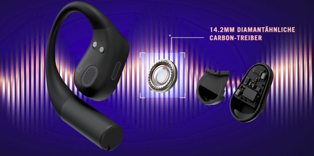 Das Konzept ist schnell erklärt: Statt den Gehörgang zu verschließen, sitzen die Earbuds locker auf dem Ohr. Dadurch bleibt die Umgebung jederzeit hörbar – ein Vorteil nicht nur im Alltag, sondern auch beim Gaming, wenn Kommunikation oder räumliche Wahrnehmung wichtig sind.