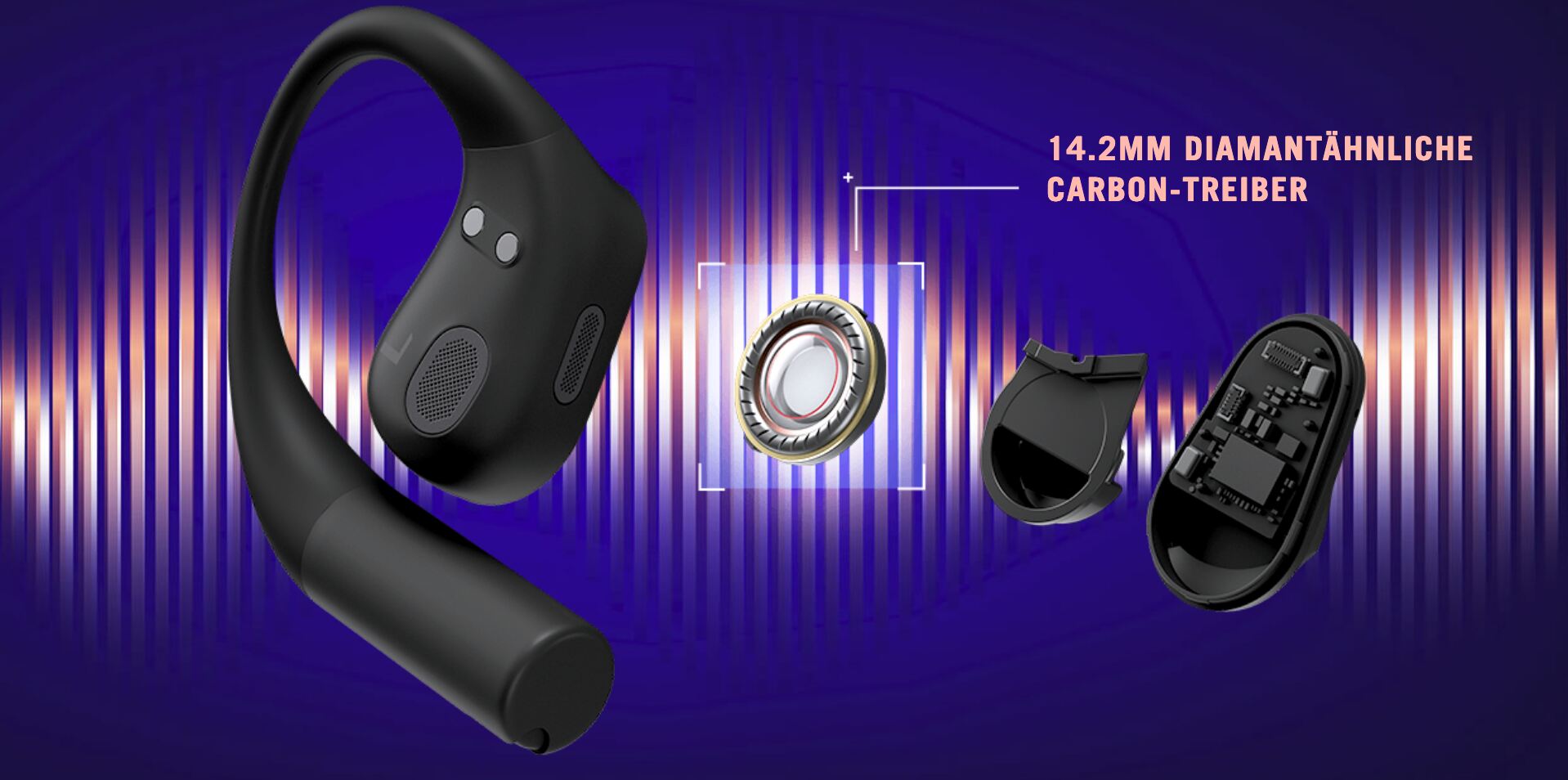 - Surround-Audio: 14,2-mm-Treiber mit Diamant-Karbonbeschichtung (DLC) sorgen für klare Höhen, tiefe Bässe und eine breite Klangszene.