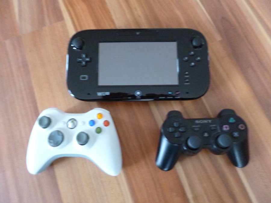 Wie ihr seht ist der Wii U Controller im direkten Vergleich doch ein ganz schöner Trümmer gegenüber dem Controller der Xbox oder der PS3.