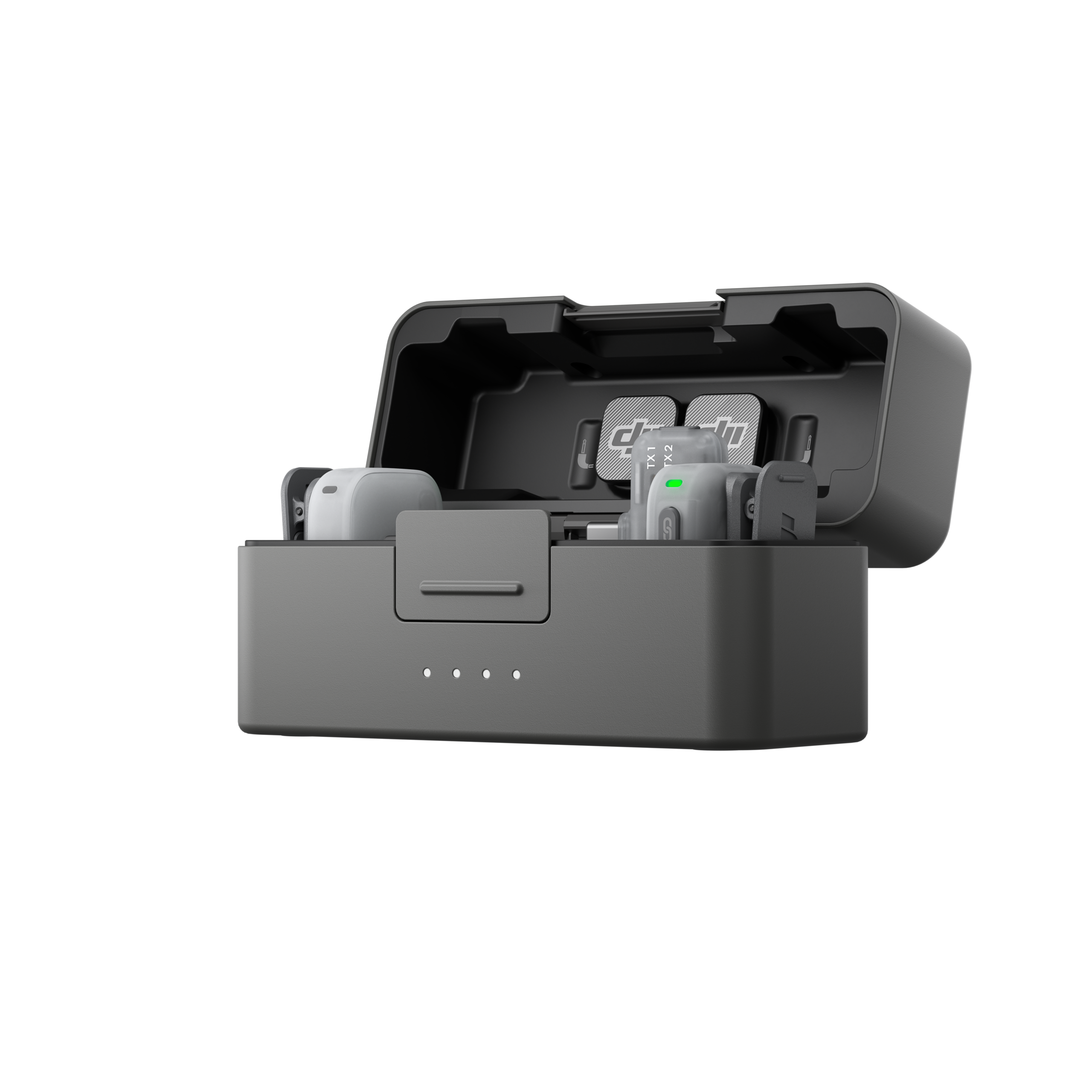 Die neue DJI Mic Mini 2 Ladeschale nimmt Sender, Empfänger und Zubehör auf. DJI bietet außerdem eine mobile Variante der Ladeschale an. Diese ist für das Set mit 1 Sender und 1 Empfänger für Mobilgeräte gedacht.