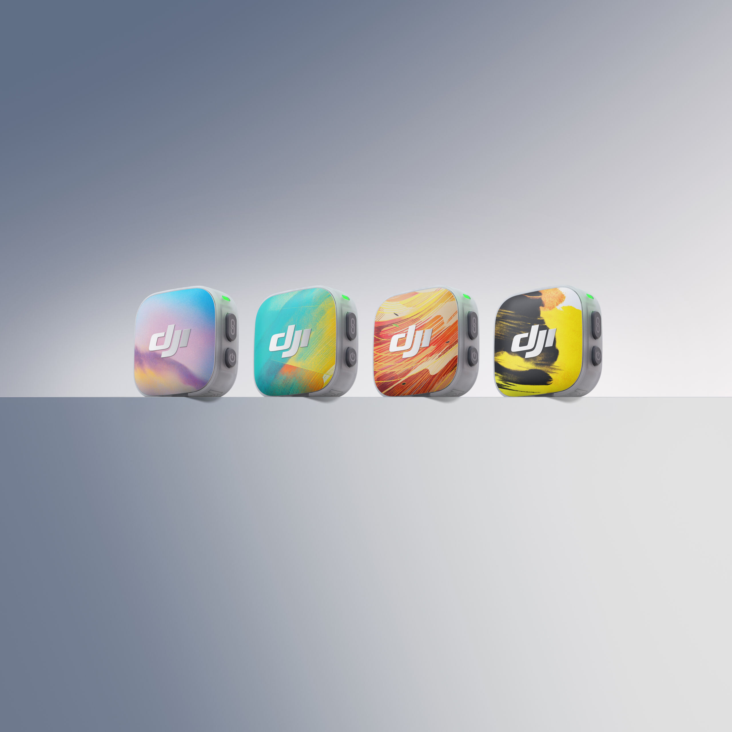 Neu beim DJI Mic Mini 2 sind die magnetischen Frontabdeckungen. Standardmäßig liegen Abdeckungen in Obsidianschwarz und Glanzweiß bei. Damit lässt sich das Mikrofon optisch etwas besser an Kleidung oder Setup anpassen. Zusätzlich verkauft DJI separat die DJI Mic Mini 2 Multi-Color-Frontabdeckungen und die Time Series. Letztere wurden zusammen mit der Illustratorin Victo Ngai gestaltet und bestehen aus vier Designs: Dawn, Surge, Blaze und Glimmer.