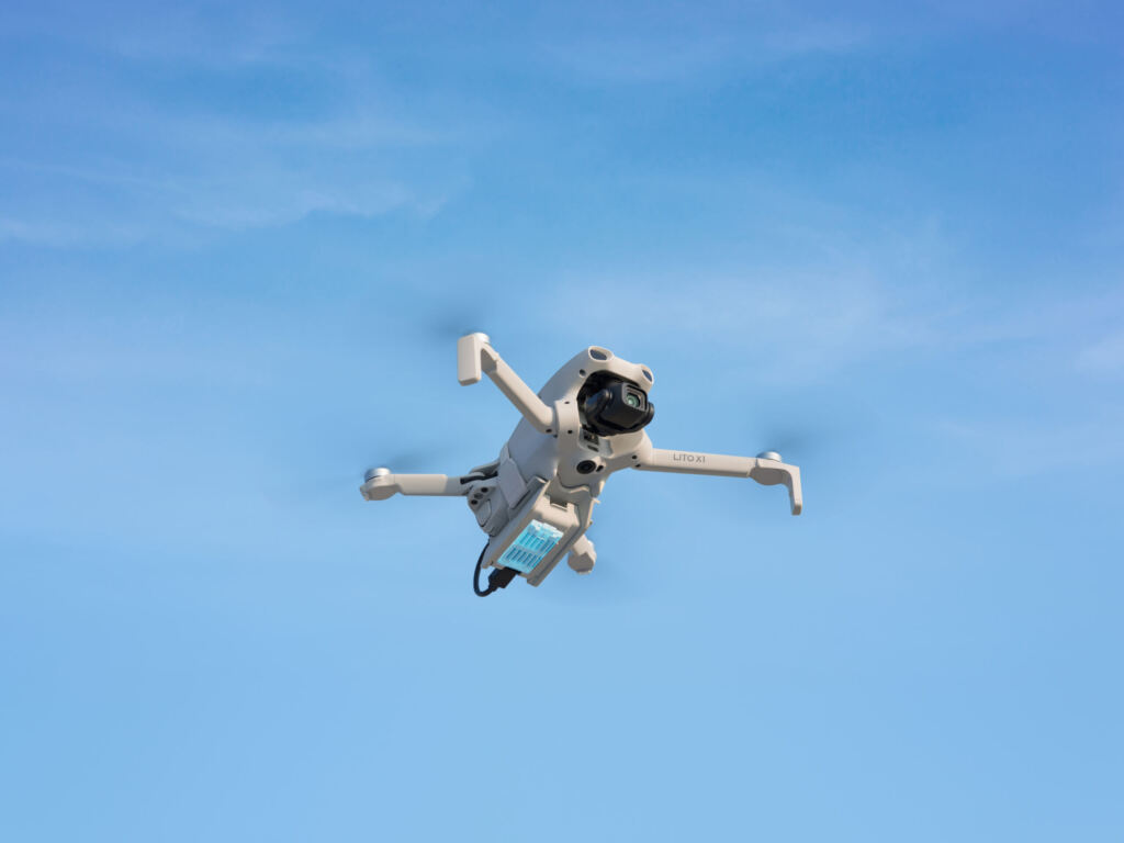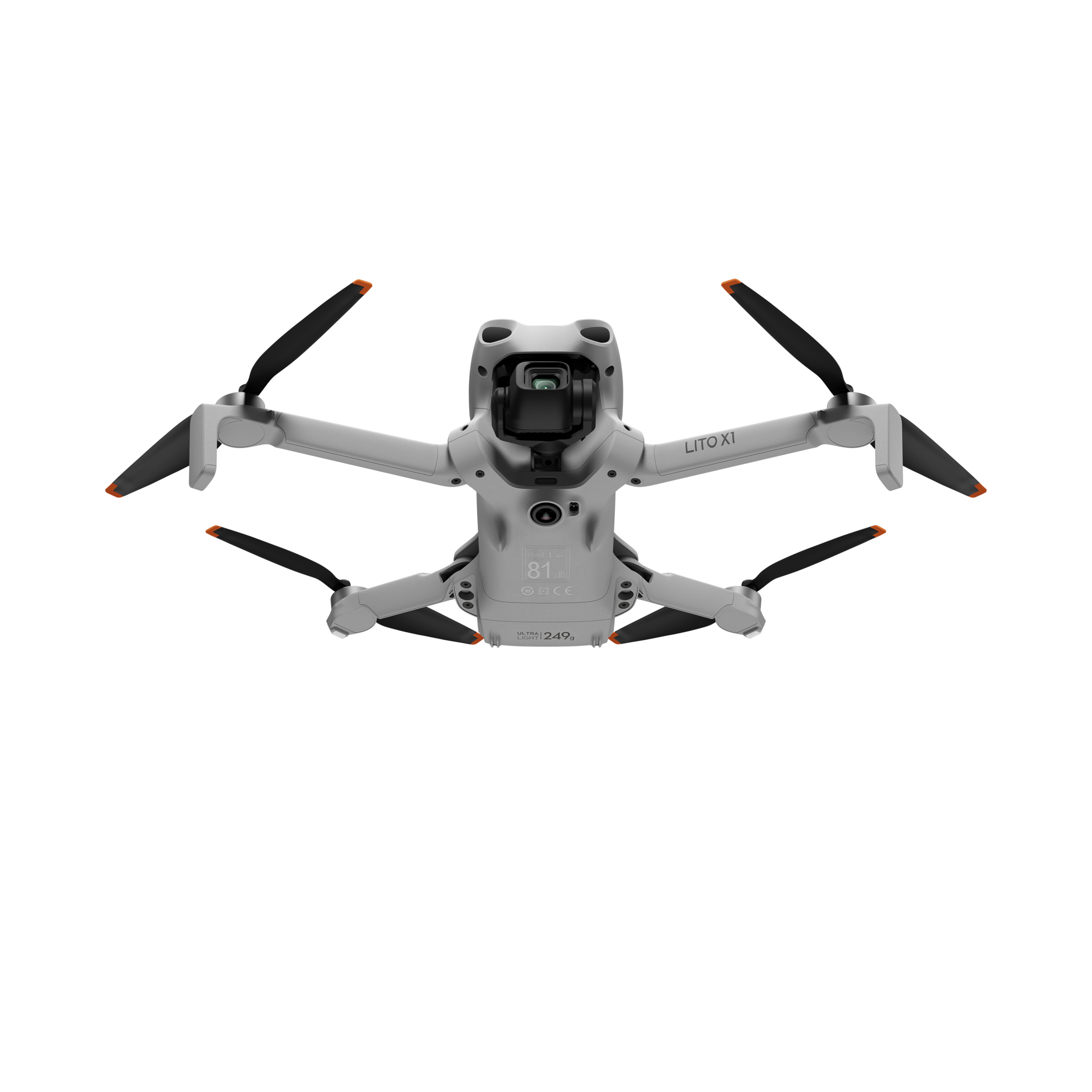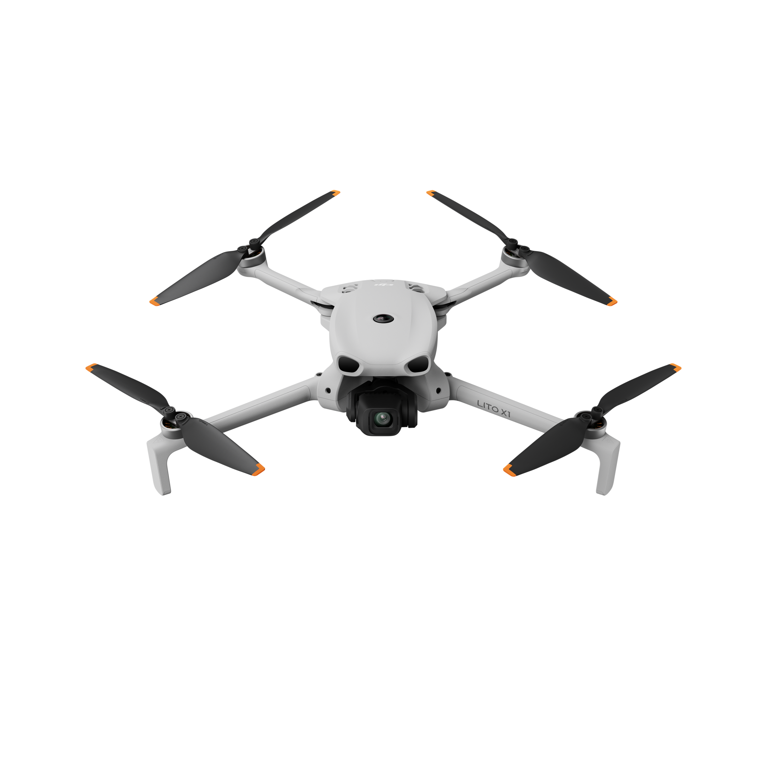 Über der Lito 1 positioniert DJI die Lito X1. Das Modell nutzt einen 1/1,3-Zoll-CMOS-Sensor mit f/1.7-Blende und bringt zusätzlich ein nach vorn gerichtetes LiDAR-System mit. Die Kamera unterstützt 4K/60 fps HDR, 4K/100 fps Zeitlupe, einen Dynamikumfang von bis zu 14 Blendenstufen sowie 10-Bit D-Log M für die Nachbearbeitung. Dazu kommen 42 GB interner Speicher, QuickTransfer mit bis zu 50 MB/s und ebenfalls bis zu 36 Minuten Flugzeit mit Standardakku.