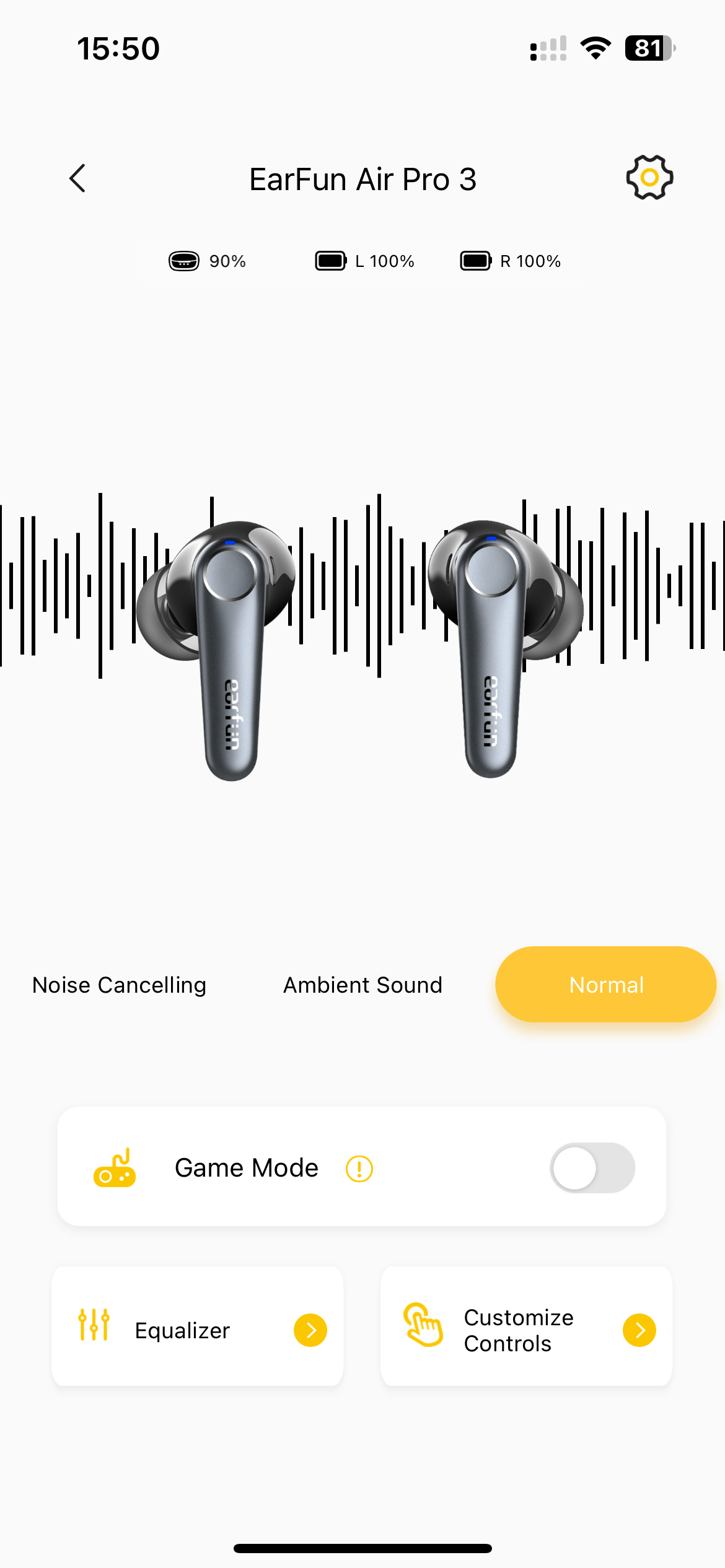 Aber nicht nur Mindern von Geräuschen ist möglich, sondern auch verstärken. Der sogenannte Ambient-Modus gibt die Außengeräusche wieder, wodurch ihr trotz In-Ears die Außenwelt hören kann – andere Hersteller nennen die Funktion auch „Hear-Through“. So bekommt ihr am Bahnhof noch die Durchsagen mit, ohne die Musik zu stoppen oder der In-Ears aus dem Ohr zu nehmen.