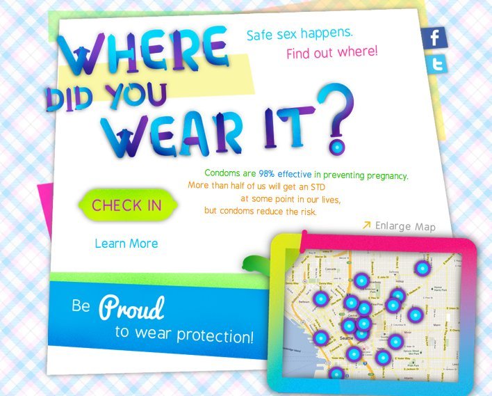 Die Aktion „Where did you wear it?“ nutzt genau das um den Standort an dem man mit einem der QR-Code Kondome Sex hatte auf einer Karte zu visualiesieren (Ich hoffe mal nicht in Echtzeit). Je nach dem wie das Kondom verwendet wird kann es bei der Ortung zu Abweichungen von bis zu 35cm kommen 🙂