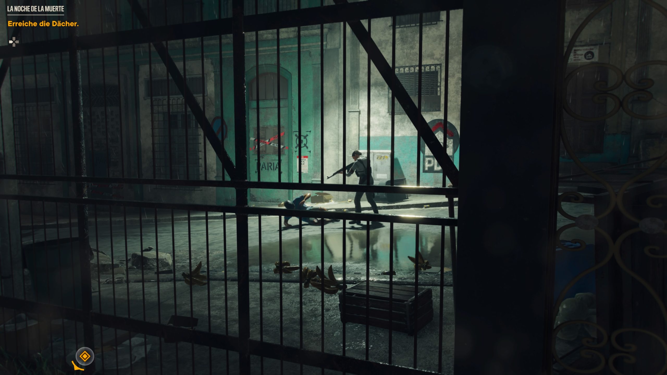 Protagonist Dani kommt zu Anfang nicht drumherum im brodelnden Widerstand von Carla Garciá mitzumachen, da die Flucht höchstpersönlich von Castillo verhindert wurde. Nun gilt es mit verschiedenen Widerständlern sowie eigener Waffengewalt den Herrscher samt Regime zu stürzen. Die Handlung ist mit rund 40 Stunden extrem lange, aber verlässt sich zum Glück nicht mehr drauf, Dani bestimmte Bereiche von Schergen zu „befreien“ um dann den Obermotz herauszulocken. Ja, ich schaue voller Verachtung auf dich, „Far Cry 5“. Vielmehr bewegt sich Dani anfangs noch recht abgeschottet auf einer kleinen Insel und später dann im gesamten Gebiet von Yara um mal oder weniger sinnvolle Aufträge zu absolvieren. Das Missionsdesign funktioniert meistens nach Schema „Geh dort hin“ – finde Informationen/töte eine Zielperson/stiehl ein Fahrzeug oder allseits beliebt Gefangene befreien. Dank des klassisch einfachen Gameplay ergibt sich schnell ein herrlicher Flow aus Handlung sowie Entdeckungen. Jedes der sieben Gebiete hebt sich spürbar voneinander ab. So bahnen sich im Stadtgebiet Esperanza herrliche Oldtimer den Weg über die Straßen während im grünen Umland nicht selten tierische Jaguare angreifen. Da hilft nur Beine in die Hand nehmen oder sich in eine der vielen herumstehenden Hütten verschanzen. Früher war sowas oftmals Deko, heute darf man rein, was der Authentizität der kompletten Spielwelt nicht abträglich ist. Während die kantigen Nebenfiguren gerne viel sprechen, trifft das leider kaum auf die Bevölkerung zu. Normale Passanten beachten Dani nicht. Bei offenen Bedrohung oder Schusswechseln mit Castillos rennen sie einzig weg.