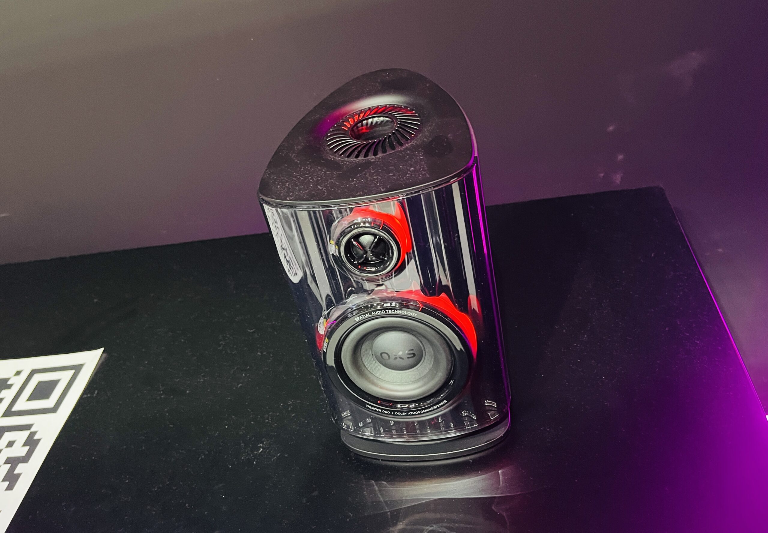 Das dritte Produkt im Bunde war das Thunder Duo X-Set, ein modulares Sound-System, das am Stand viel Aufmerksamkeit auf sich zog. Die Basis bildet eine Soundbar mit mehreren Treibern, die in Kombination mit einem zusätzlichen Nackenlautsprecher echten 5.1.2CH-Raumklang erzeugen soll. Wir konnten es in einem seperaten Bereich anhand der Eröffnungssequenz von „Mad Max: Fury Road“ testen, ein absolutes immersives Erlebnis! Gerne wieder! Dolby Atmos wird unterstützt, verschiedene EQ-Modi wie „FPS“ (Shooter) oder „Racing“ passen den Klangcharakter an das jeweilige Spiel an. Besonders der Bassdruck und die klare räumliche Ortung wurden auf der Messe hervorgehoben – ein System, das Gaming-Soundbars in eine neue Dimension rückt, allerdings auch seinen Preis im Premium-Bereich ab 599 Euro fordert. Mit HDMI, USB-C, Bluetooth und klassischen Klinkenanschlüssen ist das Thunder Duo X breit aufgestellt und damit nicht nur für Gamer interessant, sondern auch für Film- und Musikliebhaber. Von OXS wird in den nächsten Jahren zu hören sein.