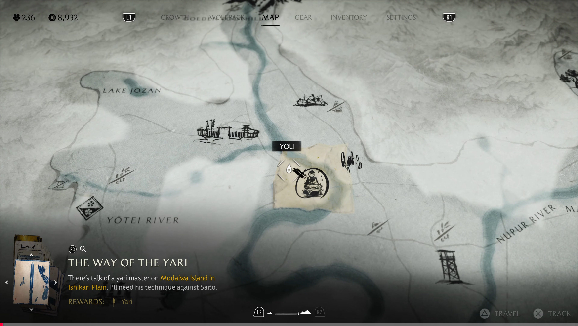 Was das Spiel jedoch vor der Beliebigkeit bewahrt, ist seine Welt. Sucker Punch verzichtet auf Markerfluten und Checklisten. Eine dichte Nebeldecke liegt über der Karte, die sich nur durch tatsächliches Erkunden lichtet. Neue Hinweise auf die Yōtei Six erhält man, indem man Dorfbewohner:innen hilft, feindliche Spione fängt und befragt oder Artefakte untersucht. Dadurch entsteht ein organischer Spielfluss: Man reitet, man entdeckt, man bleibt hängen. Die vertrauten Aktivitäten – Bambusschläge, Fuchs- und Wolfshöhlen, Schreine – sind wieder da, aber behutsam erweitert. Neu sind Sumi-e-Malereien, bei denen man das Touchpad nutzt, um Tuschebilder anzufertigen, sowie Kochstellen in den Lagern, deren kleine Buffs kaum spielentscheidend, aber atmosphärisch reizvoll sind.