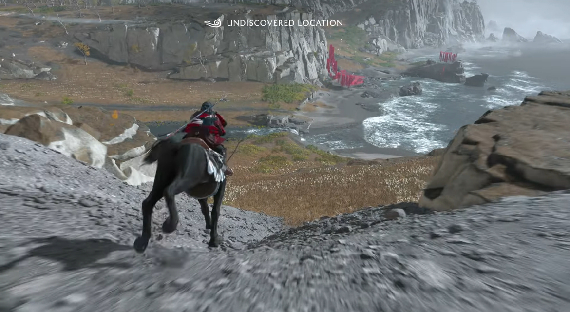 - Erkunde atemberaubende Landschaften rund um den Berg Yōtei mit verschneiten Gipfeln, Wildblumenfeldern und endlosen Grasebenen