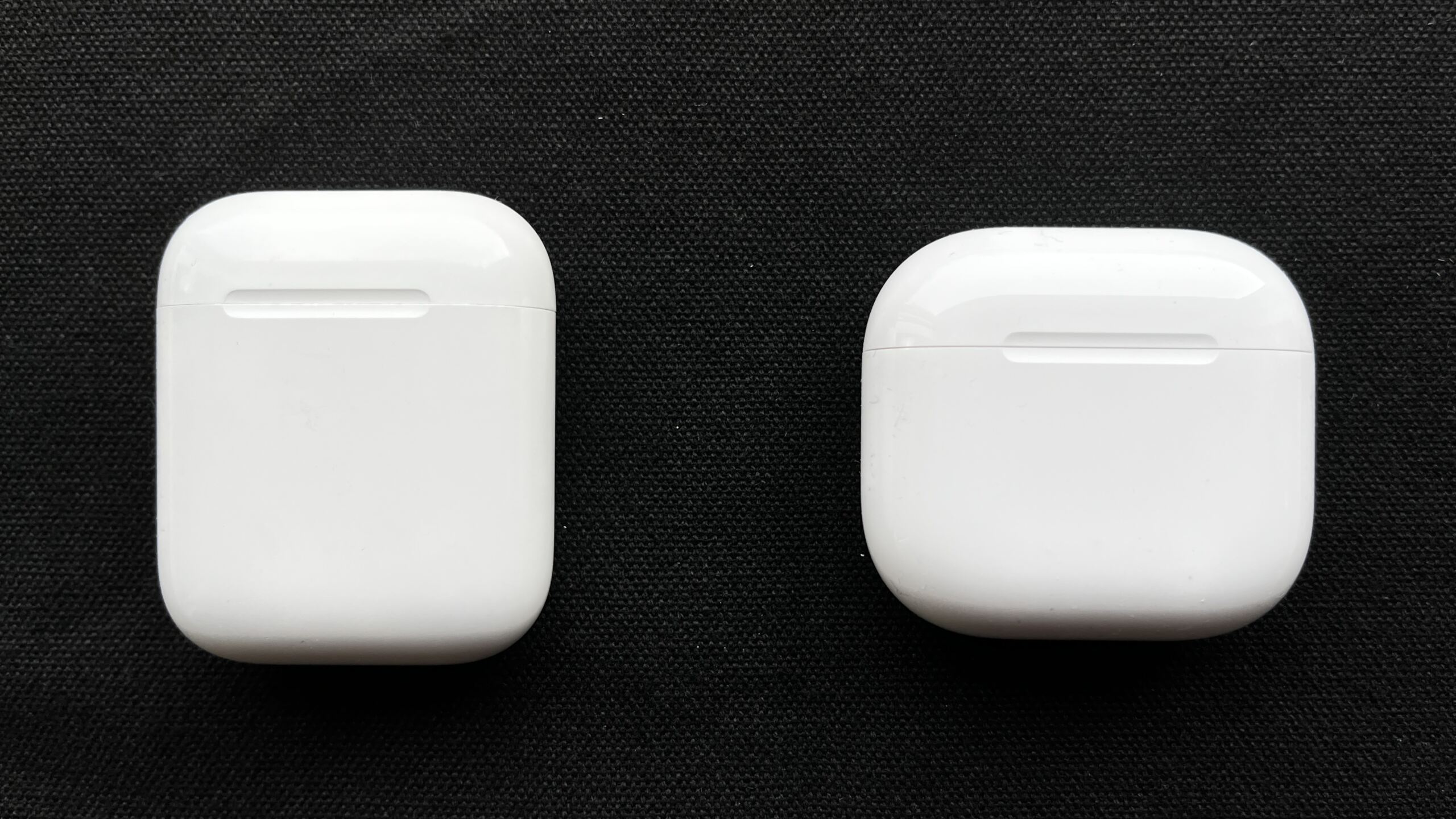Neu sind auch Gesten zur Steuerung von Siri. Dank des H2-Chips erkennen die AirPods einfache Kopfbewegungen. Nicken können etwa eingehende Anrufe annehmen, während Kopfschütteln sie ablehnen. In der Praxis funktioniert dies wunderbar – vorausgesetzt die Bewegung wird deutlich genug ausgeführt. Beim Ladecase hat Apple ebenfalls kleinere Änderungen vorgenommen. Auf die bisherige Pairing-Taste wurde verzichtet. Stattdessen startet der Kopplungsmodus durch zweimaliges Wischen auf die Vorderseite des Gehäuses in der Nähe der LED. Das Case selbst lädt über USB-C – ein Kabel legt Apple allerdings nicht mehr bei. Im Karton befinden sich also nur die Kopfhörer, das Case und die üblichen Dokumente – alles verpackt in einer recycelbaren Kartonage. Kurzes ehrliches Wort: Anscheinend beherrscht nur Apple die Fähigkeit ein kleines, selbst für die engste Hosentasche, geeignetes Case zu designen. Zum Vergleich haben wir das Case der (ebenfalls von uns getesteten) Teufel Airy TWS Pro dazu gelegt, die Unterschiede sind eindeutig. Nicht klobig oder mit Kanten. Zumal man die Earpods am besten aus dem Case nimmt, in dem man die Fingerspitzen in die Kuhle steckt und schiebt.