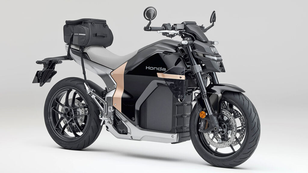 Mit 217 Kilogramm fahrfertigem Gewicht bleibt die WN7 für ein E-Motorrad vergleichsweise handlich. Honda setzt dabei auf ein rahmenloses Konzept, bei dem die Batterie eine mittragende Rolle übernimmt.