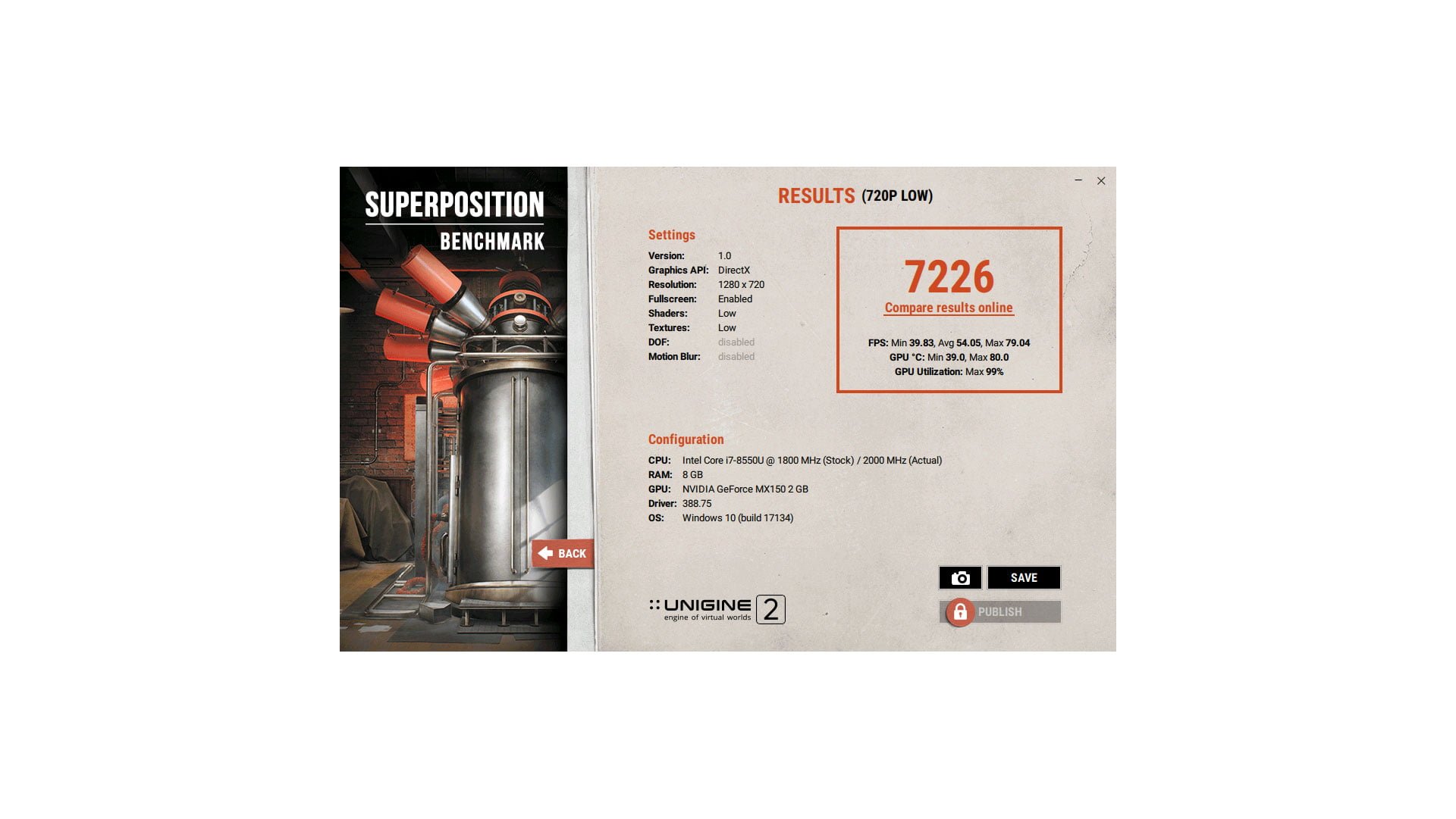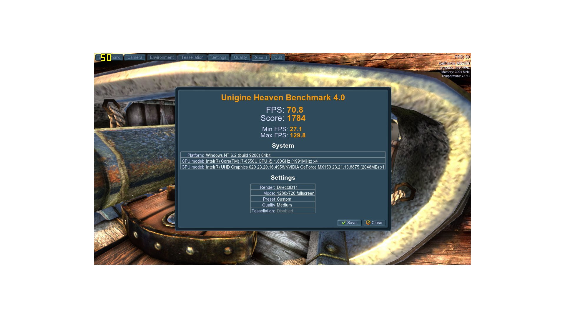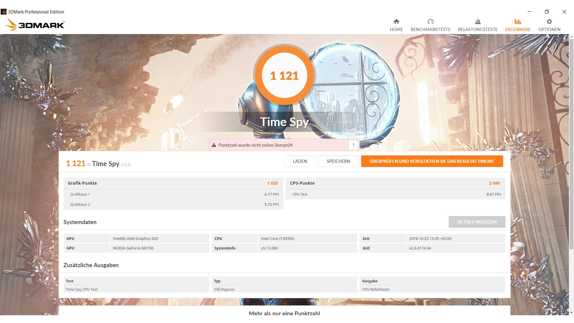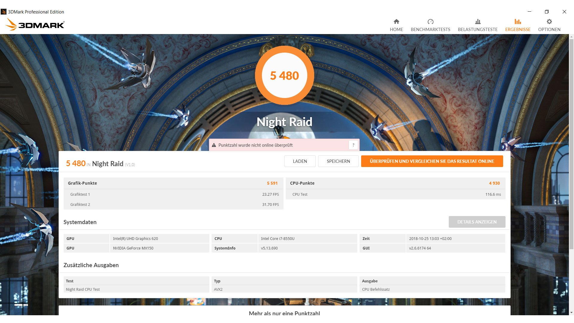 Neben der integrierten Intel UHD Graphics 620 ist auch eine Nvidia GeForce MX150 verbaut, die einen eigenen Videospeicher von 2 GB besitzt. Das Umschalten zwischen den beiden Grafiklösungen erfolgt entweder automatisch oder per Software. Mit der GeForce-Grafik lässt sich auch ein wenig spielen, wenn ihr die Auflösung und die Details heruntersetzt.