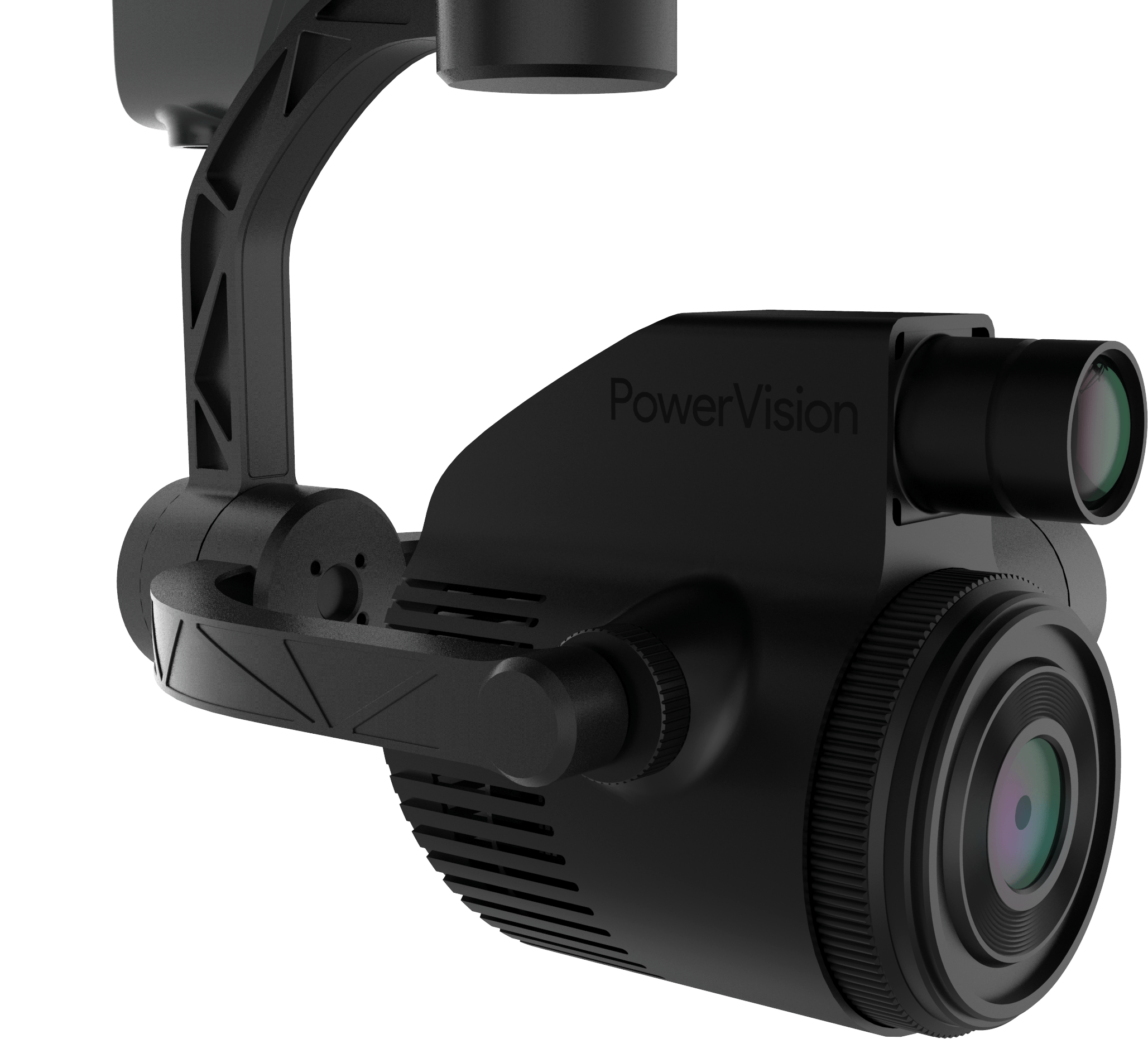 Eine der beiden verwendeten Kamera ist in der Front des Quadrocopters eingebaut und und liefert das FPV-Bild. Das Live-Bild der Kamera wird in Echtzeit auf das Smartphone des Piloten gesendet. Die zweite Kamera ist an einem Gimbal unterhalb der Powervision PowerEye Drohne montiert und ist für die Luftaufnahmen zuständig. Die verwendete Kamera hat allerdings auch den Vorteil, dass die Obejktive auswechselbar sind, selbst eine Infrarot-Kit wird angeboten. Man hat sich hier zum Micro 4/3 Format entschlossen, dass sich im professionelle Fotobereich bereits etabliert hat.