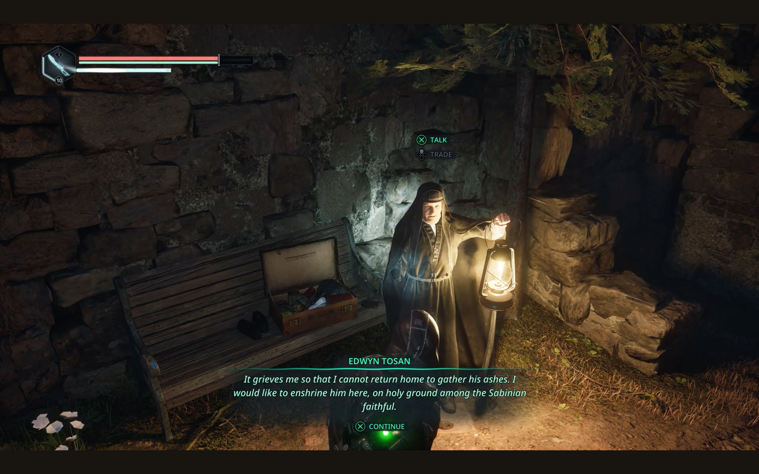Das von Capcoms Resident Evil inspirierte Inventar-System wirkt geradezu sperrig: Items müssen zunächst umständlich ins Loadout verschoben werden, bevor sie nutzbar sind. Die optionalen Nebenquests – „Good Deeds“ genannt – starten oft beiläufig durch Fundstücke oder Gesprächsfetzen und tauchen anschließend in Menüs ohne Kontext auf. Sprecht ihr mit Bewohner:innen von Hadea fragen sie nicht offensiv, sondern lassen ihre Wünsche nach Gegenständen nebenbei einfließen. Belohnungen in Form von Relikten oder Ausrüstung lohnen den Aufwand, doch die Präsentation ist so minimalistisch, dass man schnell die Übersicht verliert.