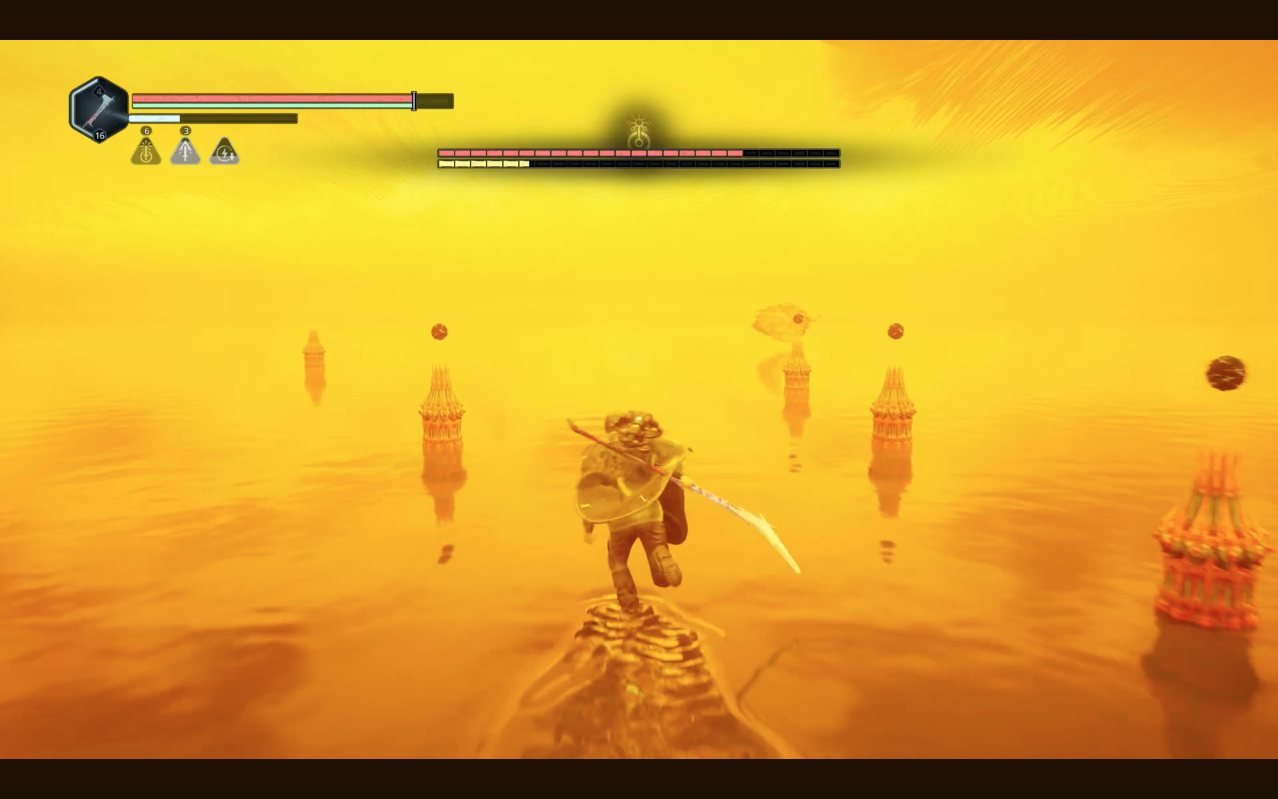Im Nahkampf verlangt das Spiel präzises Timing. Remis Ausdauerleiste limitiert Dauer und Häufigkeit der Attacken, kann aber im richtigen Moment wieder aufgefüllt werden. Beispielsweise durch genaues Blocken. Gegner verhalten sich aggressiv und fallen auch aus Entfernungen sofort über den Spieler her. Doch da nur wenige Gegnertypen existieren, wiederholen sich die Bewegungsmuster bald, was den Reiz der Auseinandersetzungen lähmt. Im späteren Verlauf werden die Kreaturen von drei Varianten von Haze-Knoten beschützt – diese kristallenen Kräfte schützen die Hollow Walkers. Hilfreich ist die kleine Drohne KAPI an unserer Seite, die als Ablenkung sowie Unterstützung in Gefechten dient. Der häufige Vergleich mit einem Soulslike-artigem Gameplay trifft nur bedingt zu – erstes sind Checkpoints fairer verteilt und Feinde sorgen selten mit einer Attacke für Game Over.