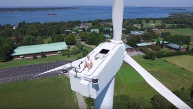 Sonnenbad auf einer Windkraftanlage