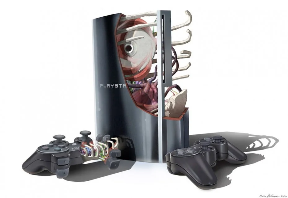 Aus meinem Feedreader habe ich mal wieder ein paar richtig geniale Illustrationen gefischt. Diesmal sind sie von Mads Peitersen. Der die Idee visualisiert hat, wie unsere teschnischen Spielzeige aussehen würden, wenn sie biologischen Ursprungs wären (so mit Knochen und Verdauung etc.) Dabei sind ein paar geniale Bilder rausgekommen.