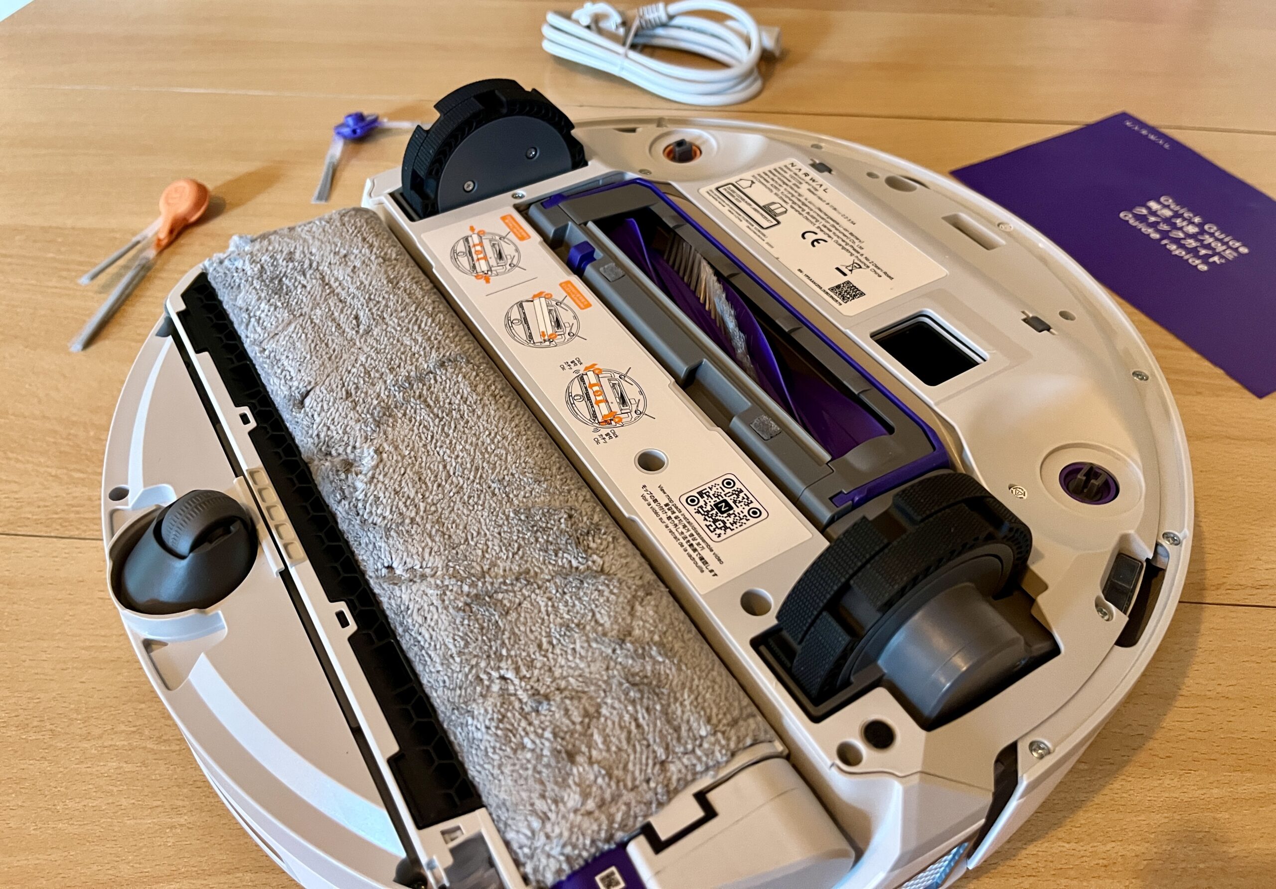 An der Unterseite finden sich die bewährten beidseitigen Seitenbürsten, die mit einem satten Klick einrasten und bis in Ecken ausfahren können. Herzstück ist jedoch die schwebende Walzenbürste, eine Narwal-Entwicklung, die inzwischen branchenweit kopiert wird. Sie ist nur an einer Seite fixiert und so geformt, dass Haare und Tierfell automatisch abgleiten und in die Staubkammer wandern. Für Haushalte mit Hunden oder Katzen ist das ein enormer Vorteil – eine Bürste, die sich nicht permanent verheddert – spart Zeit und Nerven.