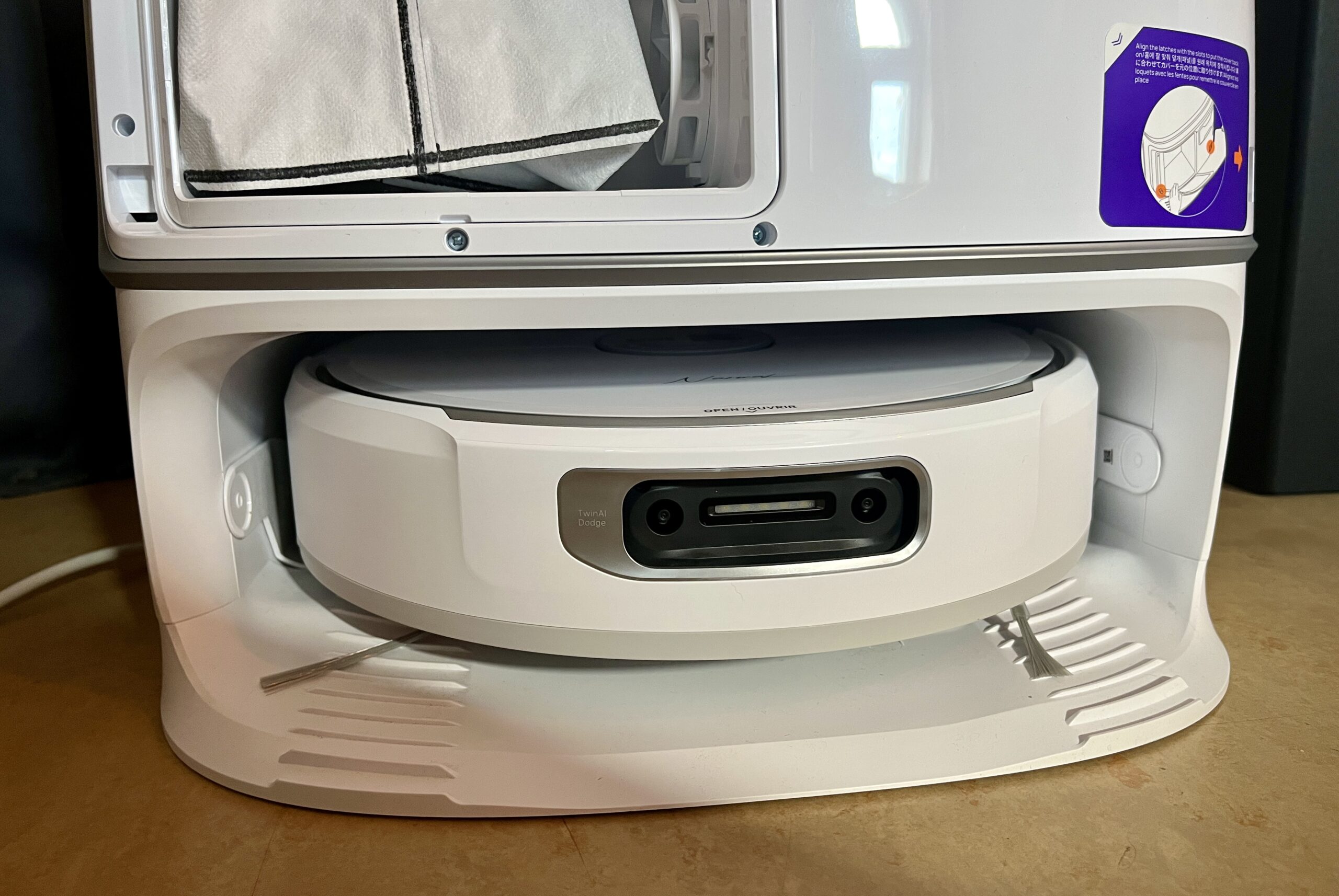So überzeugend der Flow auch ist, einige kleine Schwächen bleiben. Die Standard-Station verzichtet auf einen Reinigungsmitteltank, was man bei einem Preis jenseits der 1.000-Euro-Marke erwarten dürfte – das Reinigungsmittel wird direkt in den Frischwassertank geschüttert. Zudem ist die Laser-Einheit auf der Rückseite in ihrem Sichtfeld limitiert. In seltenen Fällen könnte es vorkommen, dass schmale Gegenstände übersehen werden – passierte uns im Test nicht.