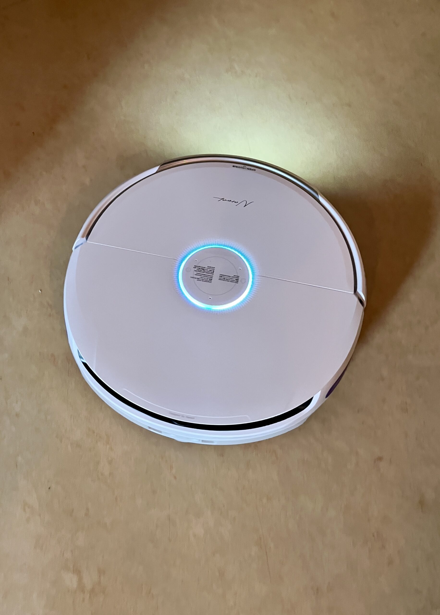 Im Inneren powered ein Akku mit 5.900 mAh, der auf eine absolute Betriebszeit von rund 180 Minuten kommt. In der Praxis zeigte sich der Flow genügsam: Nach einer halbstündigen Kombination aus Saugen und Wischen standen noch 72 Prozent Restladung zur Verfügung. Das reicht selbst für größere Wohnungen oder Häuser – ohne dass der Roboter zwischendurch zurück zur Basis muss. Das Gewicht liegt bei rund 5 Kilogramm, die Ladezeit bei drei Stunden.