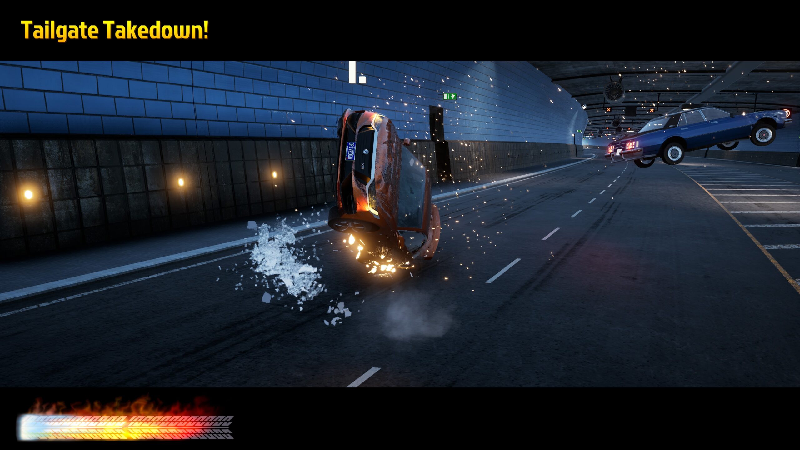 Technisch bewegt sich das Spiel im unteren Mittelfeld. Die Beleuchtung schwankt zwischen eindrucksvoll und zuweilen bizarr – etwa wenn man durch Tunnel fährt, die sich abrupt in Lichtlöcher verwandeln. Feste Objekte schweben gelegentlich in der Luft, Brückenstützen enden im Nichts, und hier und da kracht man gegen unsichtbare Wände. Diese kleinen Unsauberkeiten sind nicht spielentscheidend, aber sie nagen an der präsentierten Illusion. Dafür läuft alles flüssig, Ladezeiten sind vorhanden jedoch kurz und das Schadensmodell liefert immer wieder spektakuläre Bruchbilder, die den Geist von „Burnout“ zumindest visuell fortführen.