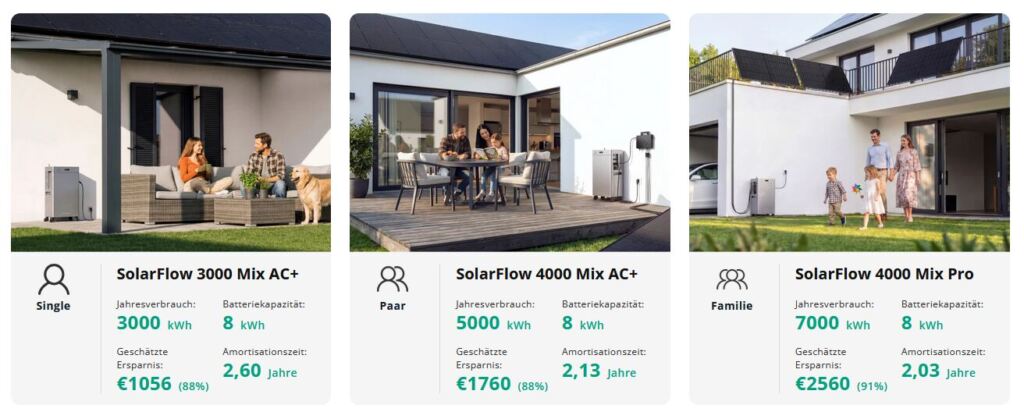 In Deutschland ist die SolarFlow Mix Serie ab sofort erhältlich. Für das SolarFlow 3000 Mix AC+ werden 1.699 Euro fällig. Das SolarFlow 4000 Mix AC+ startet bei 1.999 Euro. Das SolarFlow 4000 Mix Pro liegt bei 2.399 Euro.